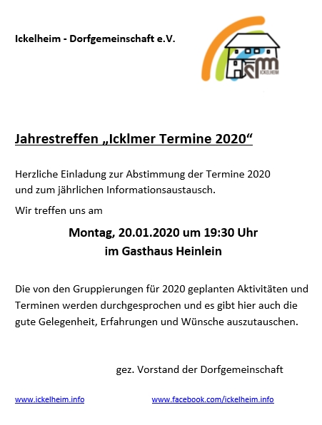 Icklmer Termine Datum/Zeit Datum - 20/01/202019:30 Veranstaltungsort 91438 Ickelheim, Gasthaus Heinlein